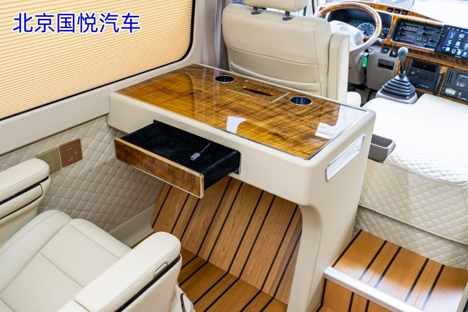内饰的个性化定制更是丰富多彩,除了上述提到的 3 张阿尔法座椅、全独立头枕座椅、菱形地板等配置外,您还可以根据自身需求进行全方位的定制。例如,您可以选择不同的内饰材质,如高级丝绒、皮质等;可以定制独特的内饰配色方案,营造出不同的车内氛围;还可以加装车载冰箱、多媒体系统、豪华窗帘等,让车内更符合自己的使用习惯。