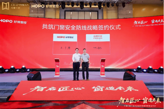 现场,好博窗控总经理王广彦与中国平安保险安心做门窗项目总经理何船共同登台,完成战略签约。这一刻,标志着门窗行业向标准化、责任化、服务化迈出了关键一步。